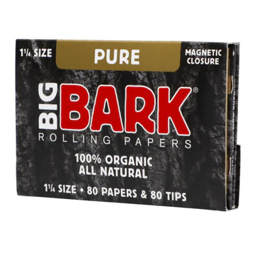 Big Bark Pure Organic Rolling Papers (1 1/4 Size) offer an eco-friendly and smooth smoking experience. Crafted from 100% pure organic fibers, these rolling papers are unbleached and free from harmful chemicals. As a result, they burn slowly and evenly, ensuring a clean and natural taste with every roll.